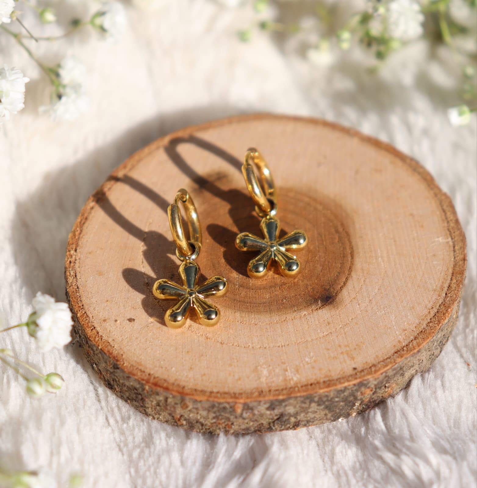 Deze oorbellen worden per bestelling met de hand gemaakt. De oorbellen zijn van stainless steel waardoor ze waterbestendig zijn en niet verkleuren. De oorbel is alleen in Goud verkrijgbaar.